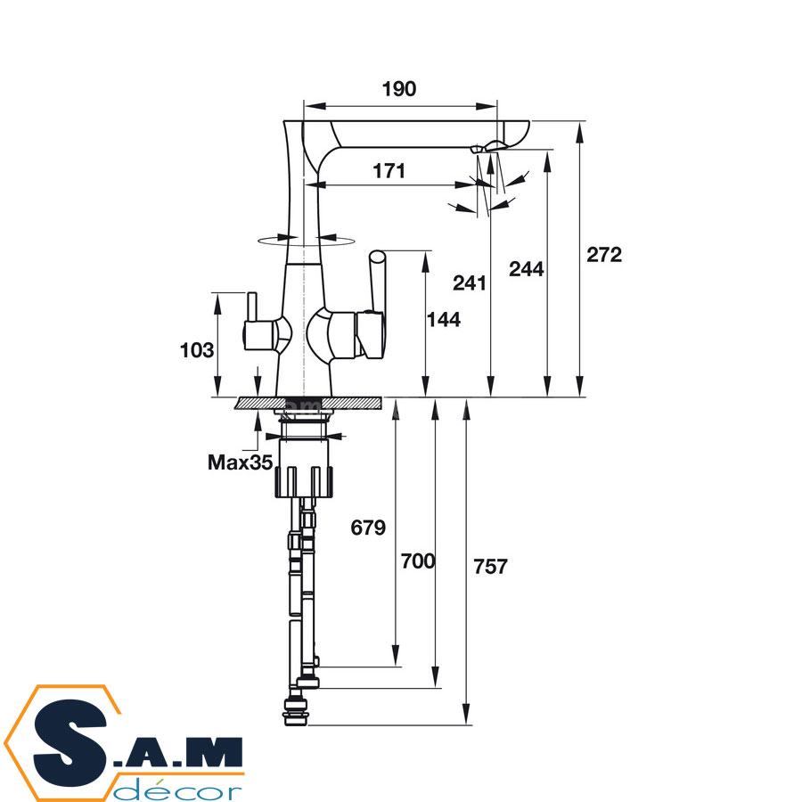 • Vòi bếp nóng/ lạnh, tích hợp 2 đường nước nóng và lạnh đầu vào. Nhiệt độ nước cao nhất đến 90º.